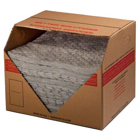 SP 2MBGPSL/GPB100MOne side is no lint, and very durable and the other side is soft and absorbent. Top layer is made of a dark gray, no lint, durable spun-bond polypropylene. Core/base layer is made from high loft meltblown fibers. Basis Wt.: 240gsm; Absorbency: 18 gal. oil/14 gal. water. Base layer is low slip making this a great product for foot traffic. Pads are boxed making individual pad shipment economical. Low linting. Pads are perforated down their center. Its unique construction method, and its lighter weight, lends itself to being used with smaller volume maintenance leaks and drips. Because the pad is maintenance only use in-doors. Not as slippery as a fully laminated pad.