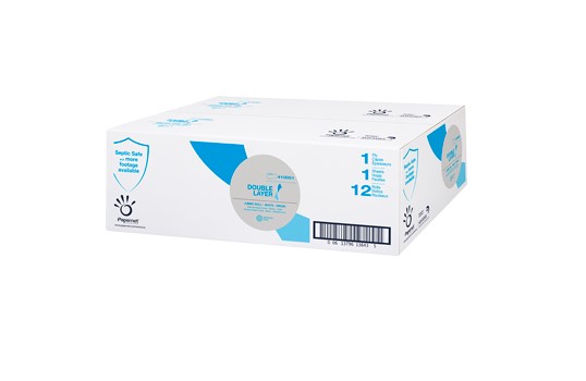 Virgin pulp material. Embossed. White. Core size: 2.40″. Roll diameter: 7.40″. Offers the softness of a two-ply product with the affordability of a one-ply product and a long-lasting roll. Ideal for high-traffic commercial restrooms.