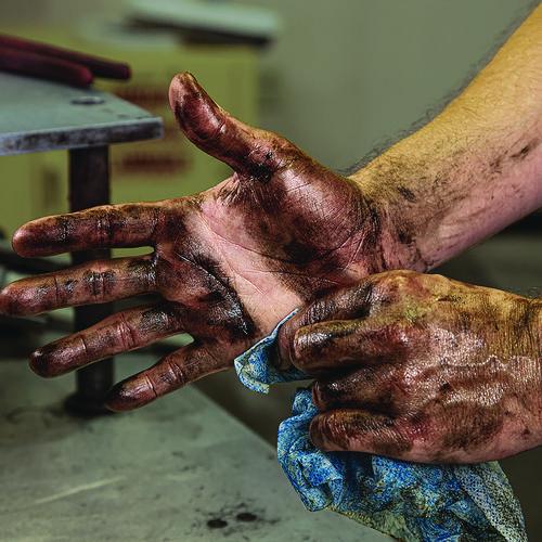 10 X 12Combines an advanced cleaning formula with a strong, dual-textured towel to thoroughly clean hands and surfaces ANYWHERE, ANYPLACE, ANYTIME![R]. Clean, citrus fragrance. No sticky residue. Advanced cleaning power. 10″ x 12″ wipe. The clean, citrus-scented formula loosens and dissolves industrial soils while leaving hands free from dryness and irritation. The Rough Touch[R] blue towel locks in soil to prevent it from transferring back onto hands and surfaces. Hands are left feeling clean with no sticky residue and no rinsing required. No soap! No water! No problem![TM]. Removes: Dirt, tar, oils, grease, paints, adhesives, epoxies, caulks, inks and dyes, urethanes, lubricants, “Icky-PIC”, cable jelly, asphalt.