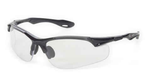 BREA SERIES SAFETY GLASSES, CLEAR LENS,BLACK FRAME, ANTIFOG/ANTISCRATCH, PAIR