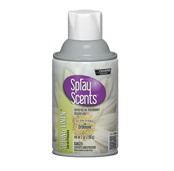 Completely eliminate unpleasant odors and leave a clean, fresh scent in the air. Contains Ordenone[TM], a deodorizing ingredient that is an effective odor eliminator. The measured spray deodorizes up to 6,000 cubic feet. Universal spray tip, our metered air fresheners are manufactured with a universal actuator tip and will fit most metered-aerosol dispensers. 30-day supply (when sprayed at 15-minute intervals). Can Size 12; Net Wt. 7 oz. Recommended uses: Formulated for use in hotels, hospitals, offices, motels, nursing homes, restaurants, schools and public buildings.