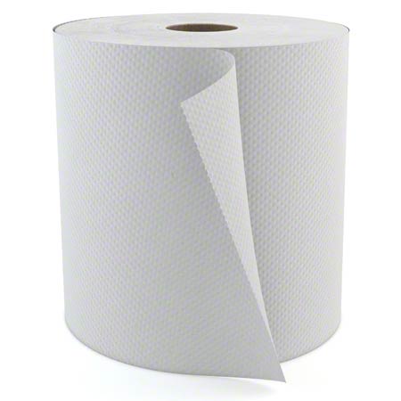 Made with 100% recycled fiber, these roll towels also reduce impact on the environment. White. The high capacity, absorbent roll towels reduce maintenance time and run outs. Combining value and affordability, this is the economical choice for cleaning needs. Perfect for use in high-traffic venues across industrial, retail, foodservice and education venues.