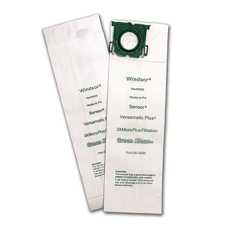 Fits: Kenmore upright vacuum cleaners that use bag 50015. Fits: Sanitaire Eon Model Series S5000, SC5500, Type RL. Fits: Triple S SSS Prosense. Fits: Windsor Sensor XP12, XP15, XP18, S12, S15, S2, SRXP15, All Star Javelin 12 Series. Fits: Windsor ProChem Century 400 series, Karcher CVU30-1, CVU46-1. Fits: Hillyard Trident V12XP, V12S. 10 per pack, 10 packs per case. Uses the highest quality filter media including Melt-Blown inner liner in order to achieve filtration efficiencies up to 99.9%. Designed specifically for commercial use, they are always equal to, or exceed OEM quality. Better filtration means cleaner air, less dusting, longer secondary filter life, at considerable savings. Back by the Green Diamond Warranty. Maintains suction longer than conventional bags: better suction, less vacuuming. Keeps machines running at peak performance. Removes many indoor allergens, especially in the critical 0.3 to 1 micron range.